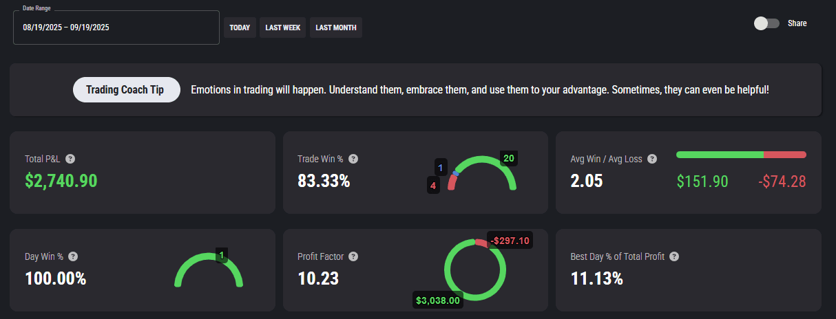 Trades are tracked and reviewed openly within the community. Wins, losses, and drawdowns are documented so traders can focus on execution quality and process improvement - not cherry-picked results.
